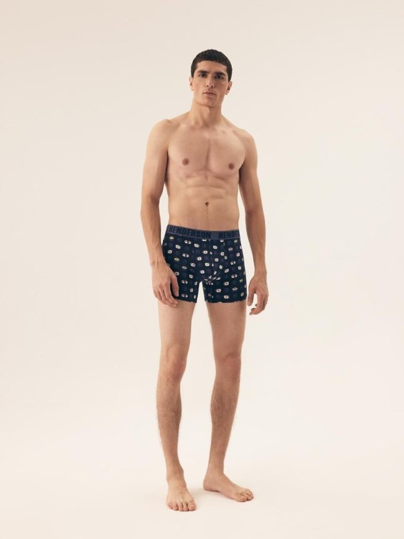 Bokserki męskie z wysokiej jakości bawełny, które zapewniają wygodę przez cały dzień. Szeroka guma w pasie z logo firmy gwarantuje idealne dopasowanie, a średnia długość nogawki (medium leg) zapewnia swobodę ruchów. Zestaw zawiera dwie pary: granatową gładką i wzorzystą. Pakowane w eleganckie pudełko, idealne na prezent.