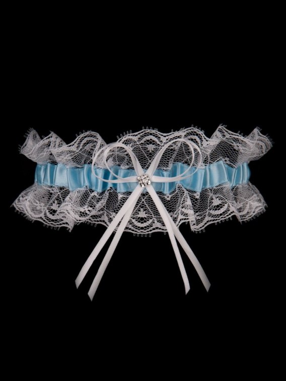 Klasyczna, ślubna podwiązka Praga uwodzi delikatną, biała koronką w połączeniu z satynową, połyskliwą taśmą. Uroku dodaje jej podwójna kokardka i zdobienie w postaci dużego dżeta.