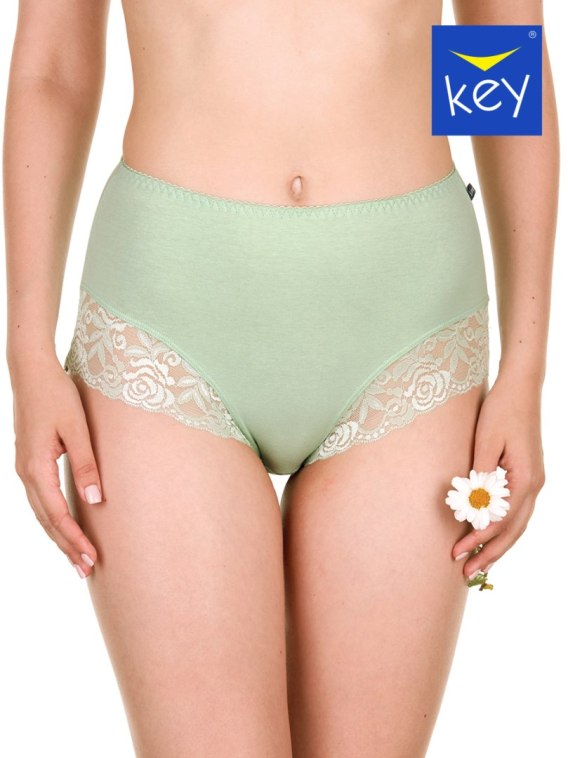 Bawełniane figi damskie zdobione wstawkami z koronki, pakowane po dwie sztuki: jedna gładka, druga wzorzysta. Krój maxi bikini - wysokie w stanie.