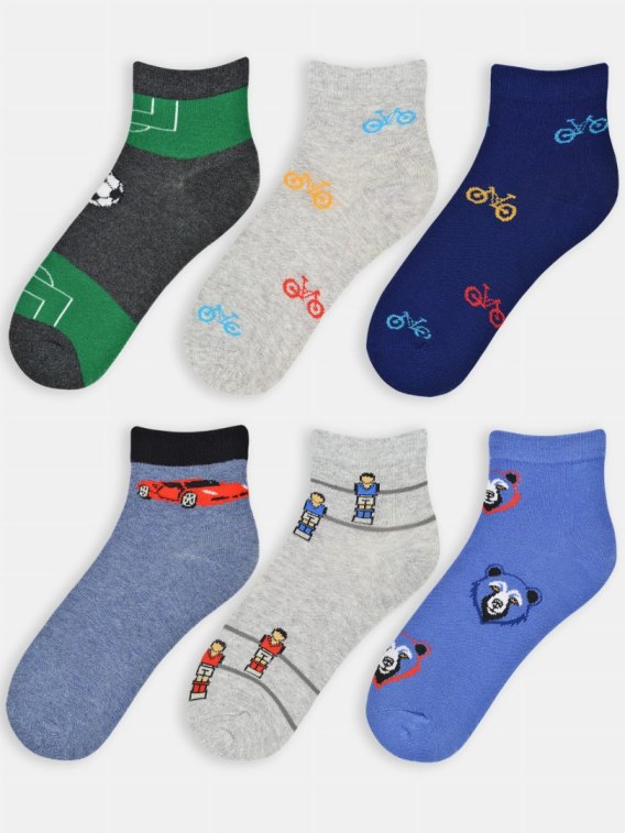 Skarpety bawełniane chłopięce za kostkę, ozdobione zabawnymi wzorami.