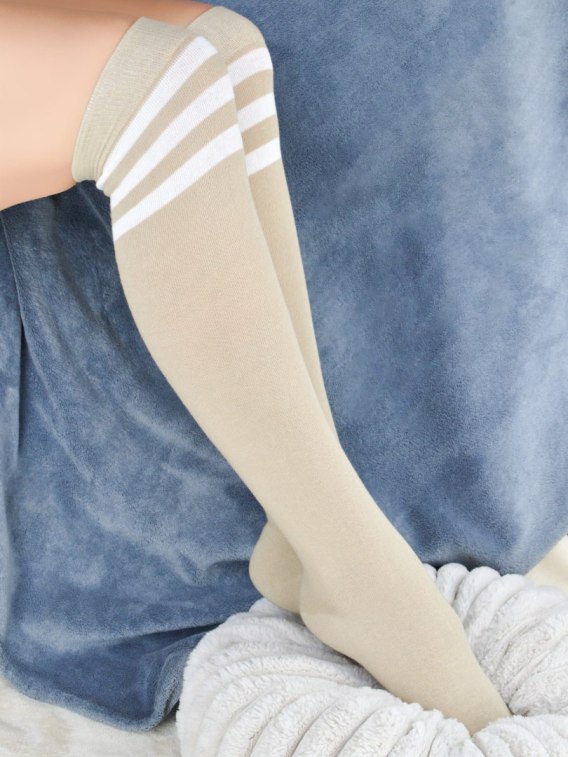 Komfortowe zakolanówki z ozdobnymi paskami. Miękkie i elastyczne, zapewniają wygodę noszenia i atrakcyjny wygląd. Idealne do codziennych i modowych stylizacji.